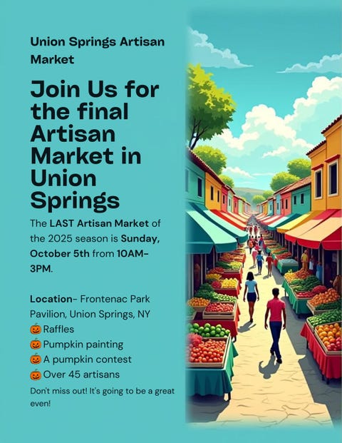 Come join us for the final Union Springs Artisan Market for 2025!